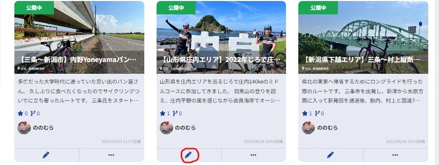 いままで走ったルートを自分で振り返りながら、他のサイクリストにシェアしてみましょう!