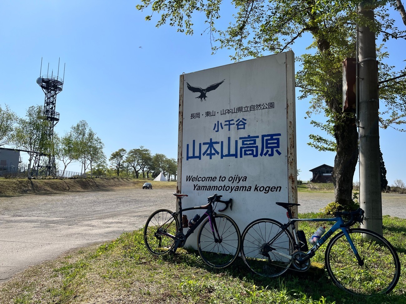 ヒルクライムの最中はつらいですが、頂上には絶景が待っているので、ついつい登り切って写真を撮ってしまうんですよね。頂上の立て看板と自転車の写真は自転車乗りの定番構図です。