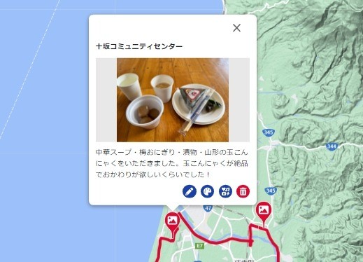特にグルメライドのログは写真の量が多くなると思うので、地図エディタ上にグルメスポットをまとめながら写真を入れてみましょう。