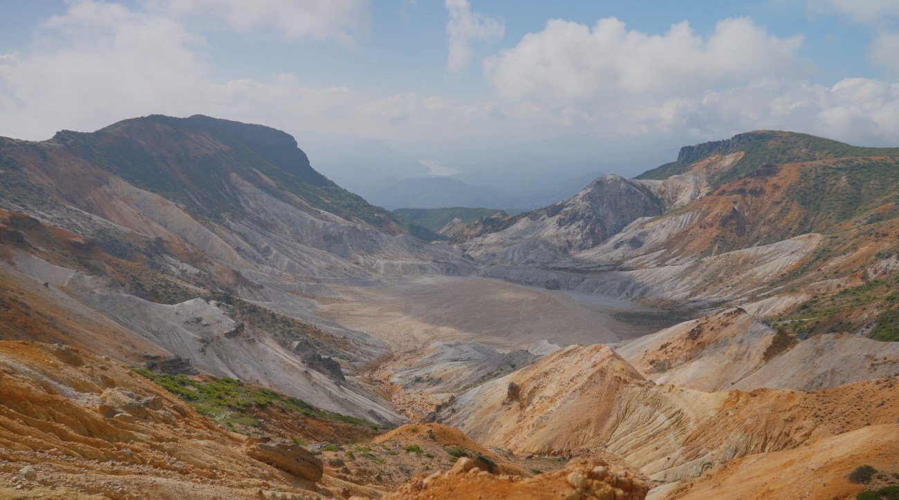 明治時代に噴火の記録を持つ火山で、山頂から20分歩くと火口を展望することができ、本当に最高な景色でした。