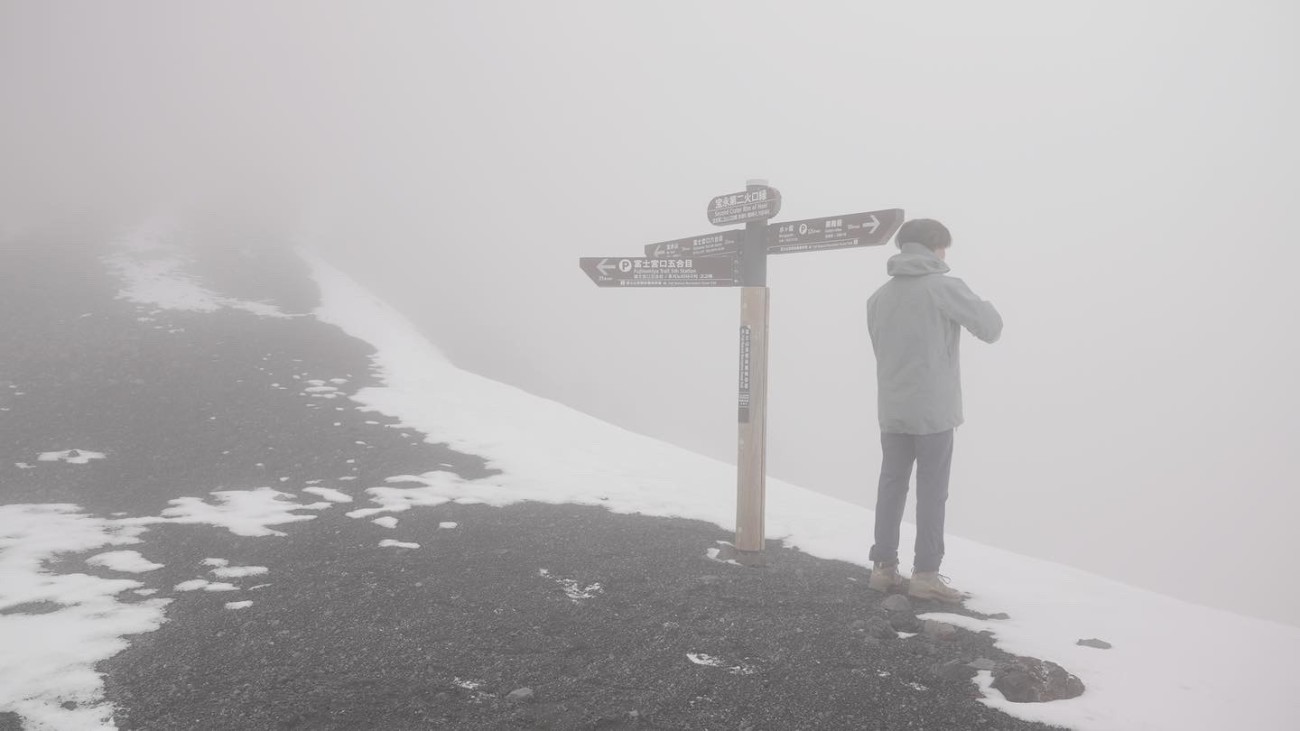 すると風がかなり強くなり、ガスも広がり100mほど先は見えないほど悪化してきました。
