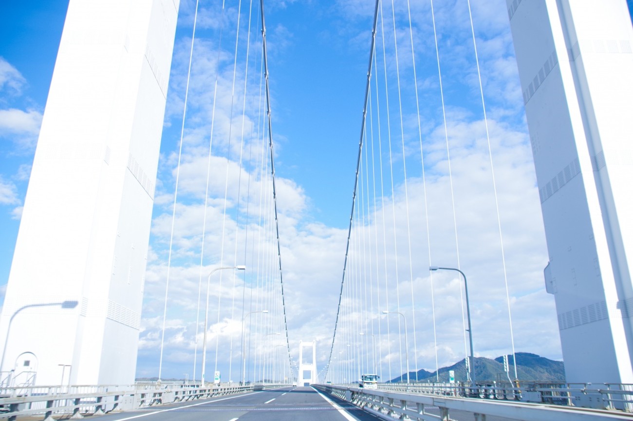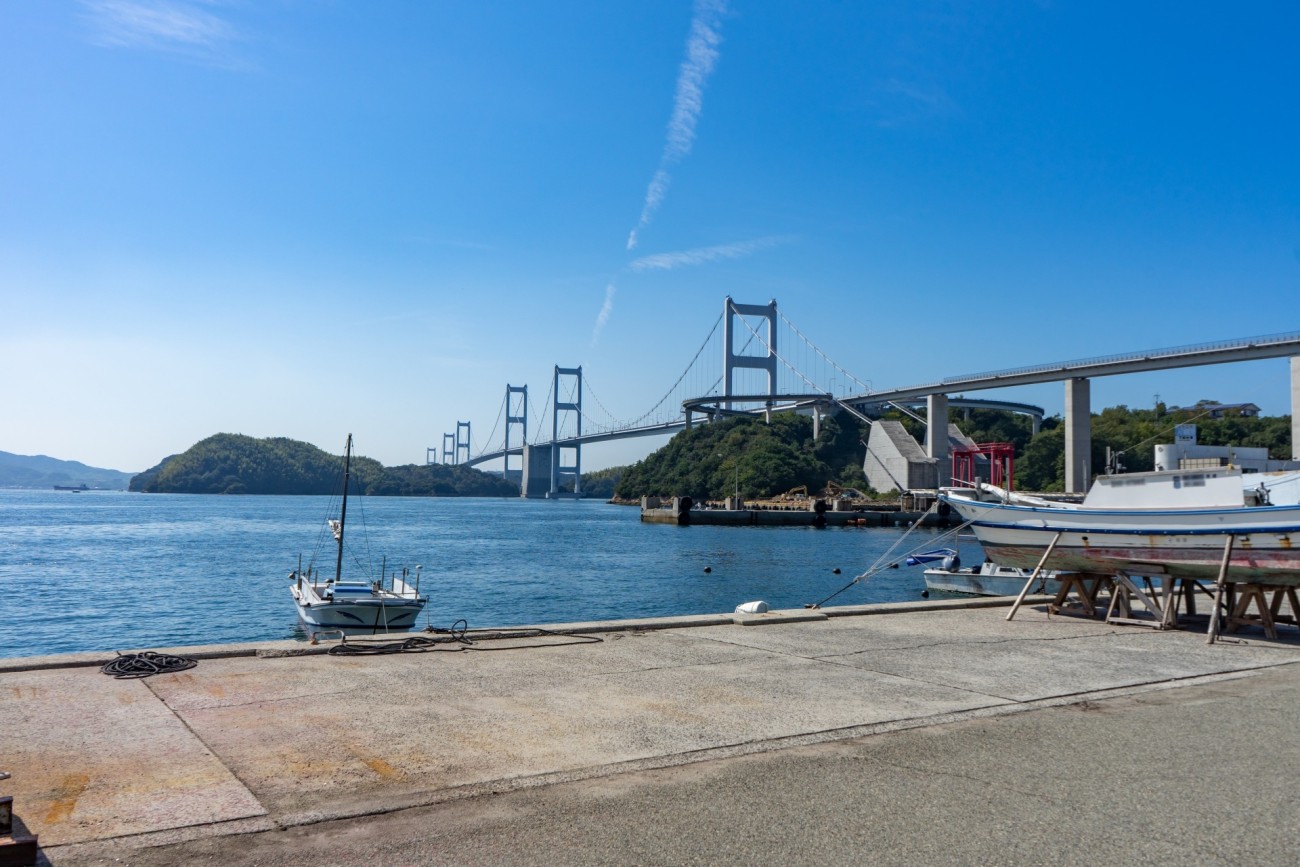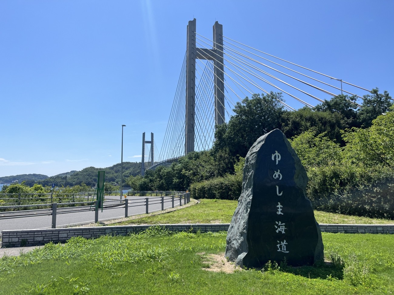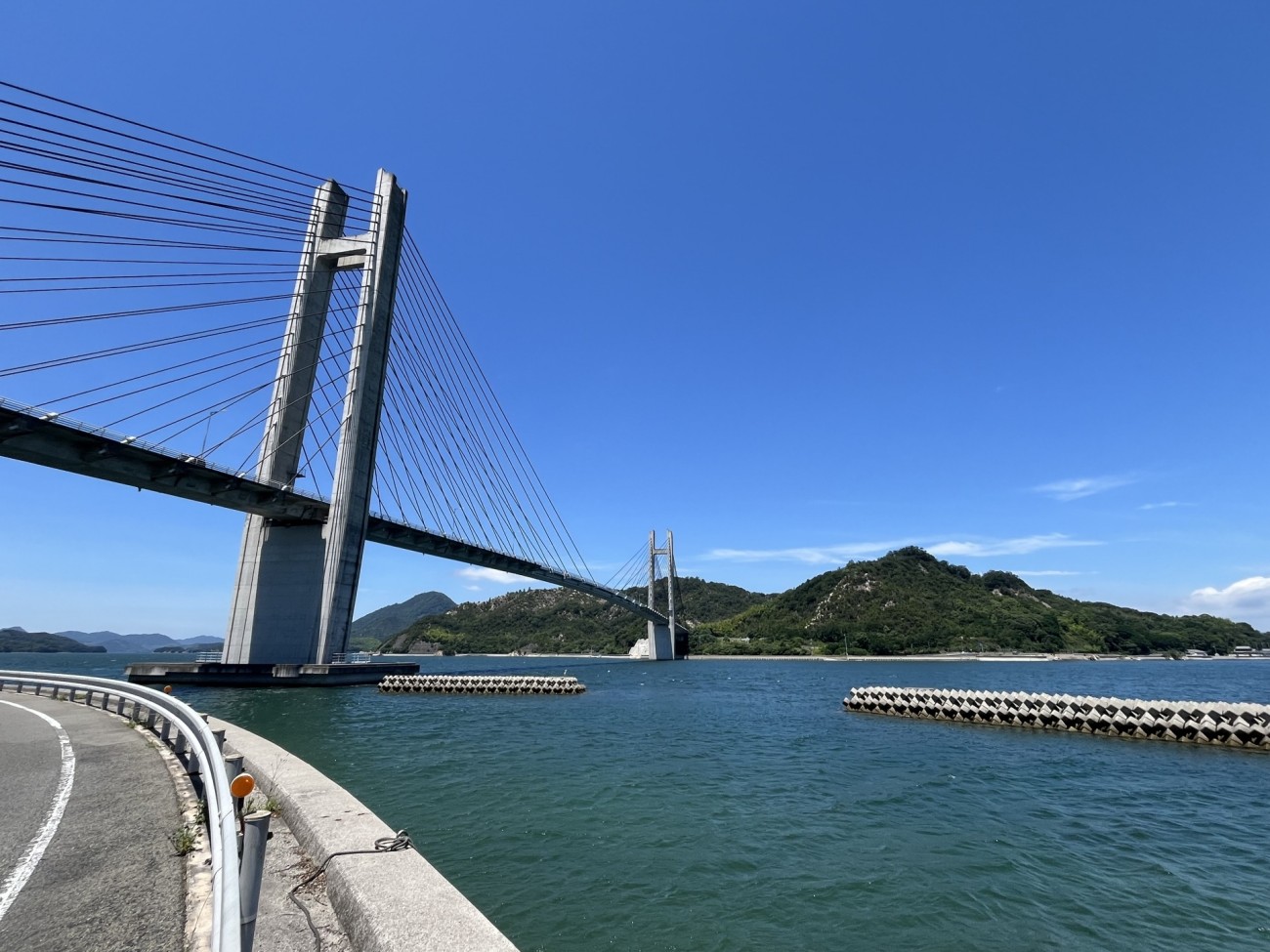 瀬戸内の穏やかな海と橋の曲線が美しく、天気が良ければ四国まで見えることもあります。