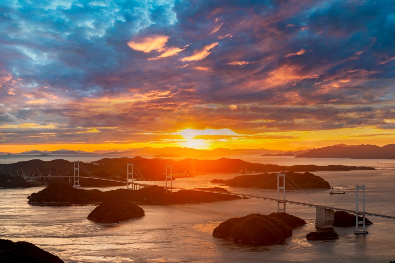 しまなみ海道は、広島県尾道市から愛媛県今治市までを結ぶ、全長約70kmの海道ルートです。