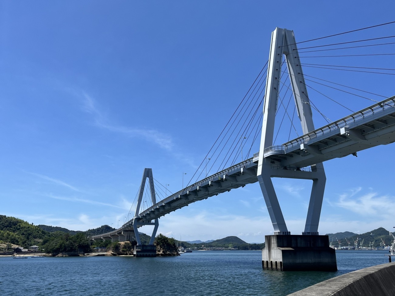 しまなみ海道の中でも特に美しいと評される橋。 優雅なアーチを描く姿は「しまなみの女王」とも呼ばれています。