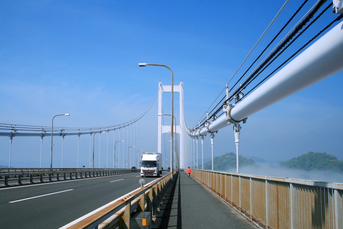 高速道路と並行して自転車・歩行者専用道が整備されており、 自転車で海を渡れる数少ないルートとして、国内外から「サイクリストの聖地」と呼ばれています。