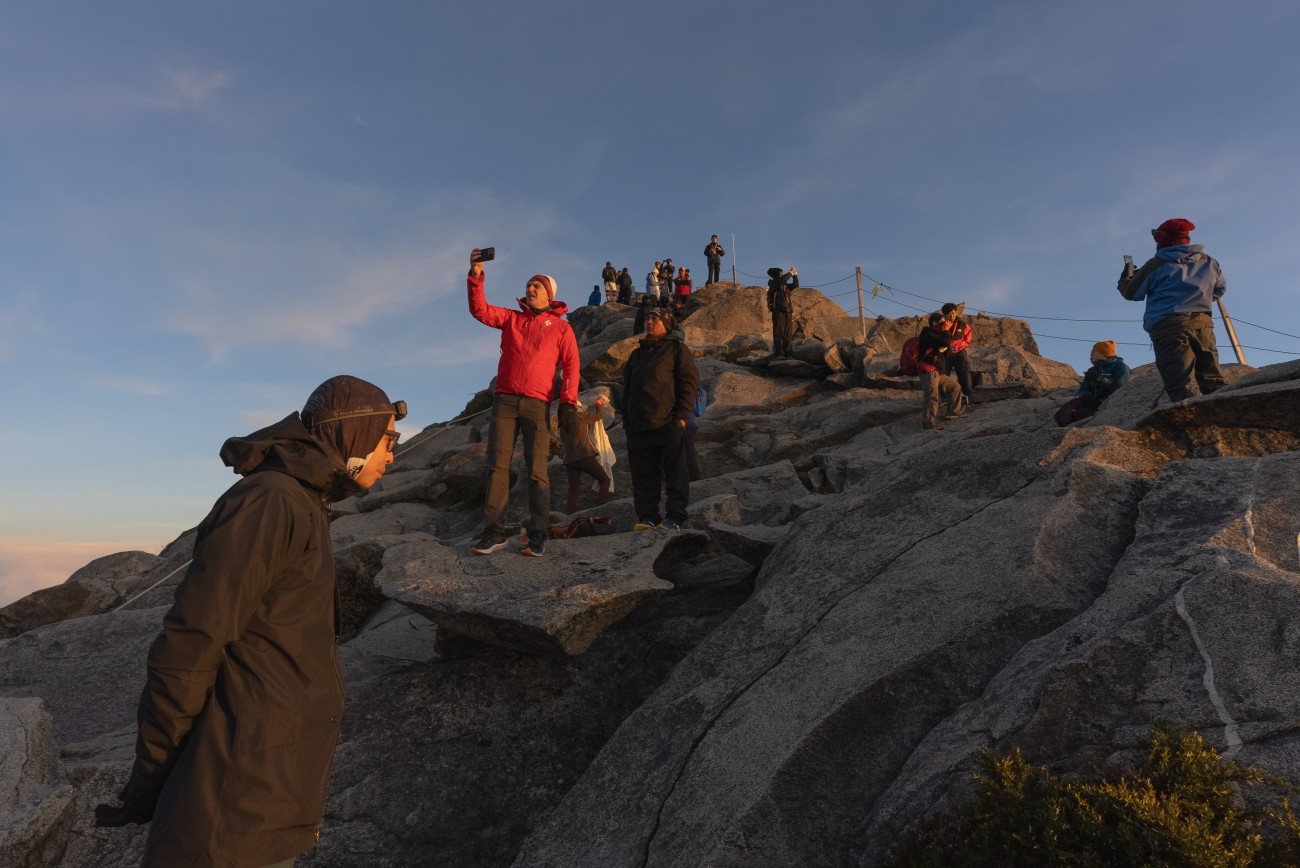 キナバル山には1日に160人ほどの入山客を受け入れているそうで、時間によっては山頂付近に100人くらいは集まりそうですね。