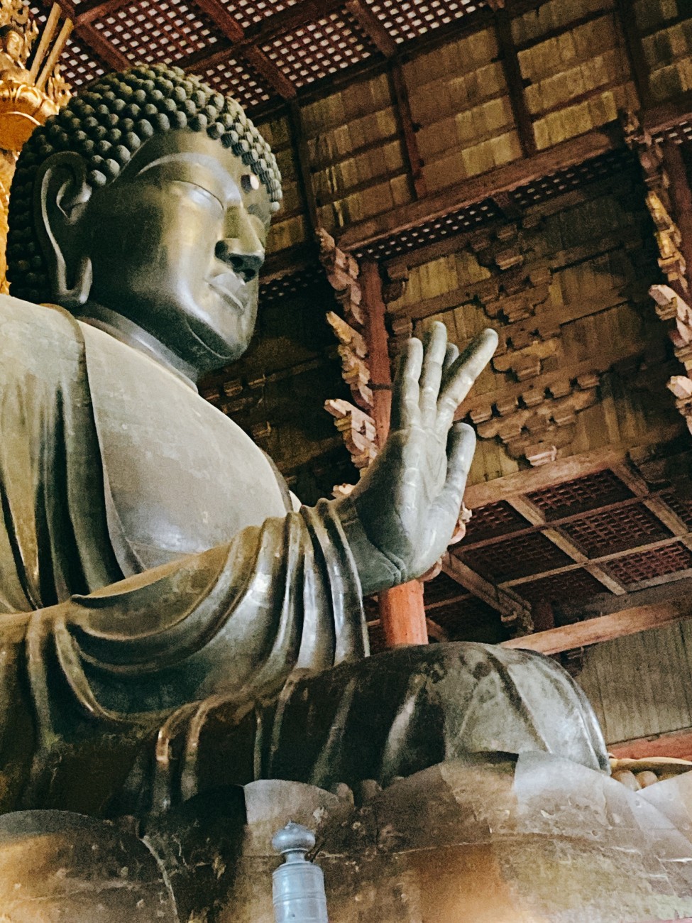 まずは修学旅行でも行く人が多い東大寺の大仏。近くで見るとその迫力は圧倒的で観光客が多く集まるのも頷けます。